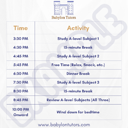 Begin your revision as soon as possible to avoid last-minute cramming. Create a study schedule and prioritise topics you find challenging or have forgotten. Aim for at least 3 hours of study time per day, and remember to take breaks to avoid burnout. Here are some examples for GCSE and A-level students: